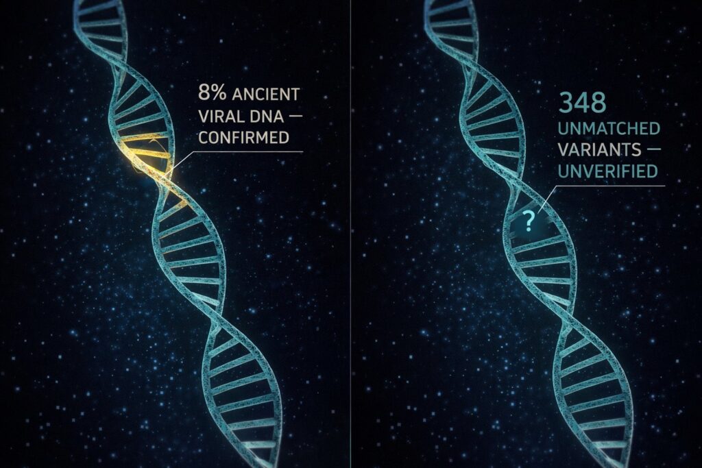 Glavna genetika tiho je priznala da otprilike 8% ljudskog genoma čini „izvanzemaljska“ DNK – drevni virusni nizovi iz infekcija prije milijuna godina koji su se trajno ugradili u stanice naših predaka i sada se prenose kao ljudski endogeni retrovirusi (HERV).
